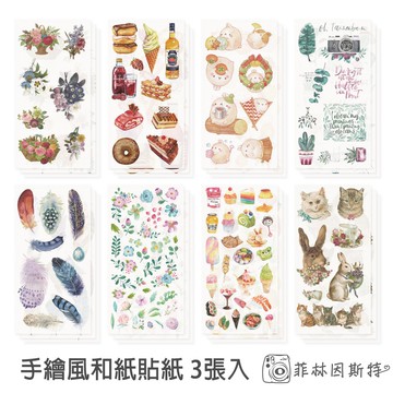 手繪風和紙貼紙3張入diy 裝飾貼紙和紙紙質文青咕卡拍立得底片手作相本菲林因斯特 蝦皮商城 Line購物